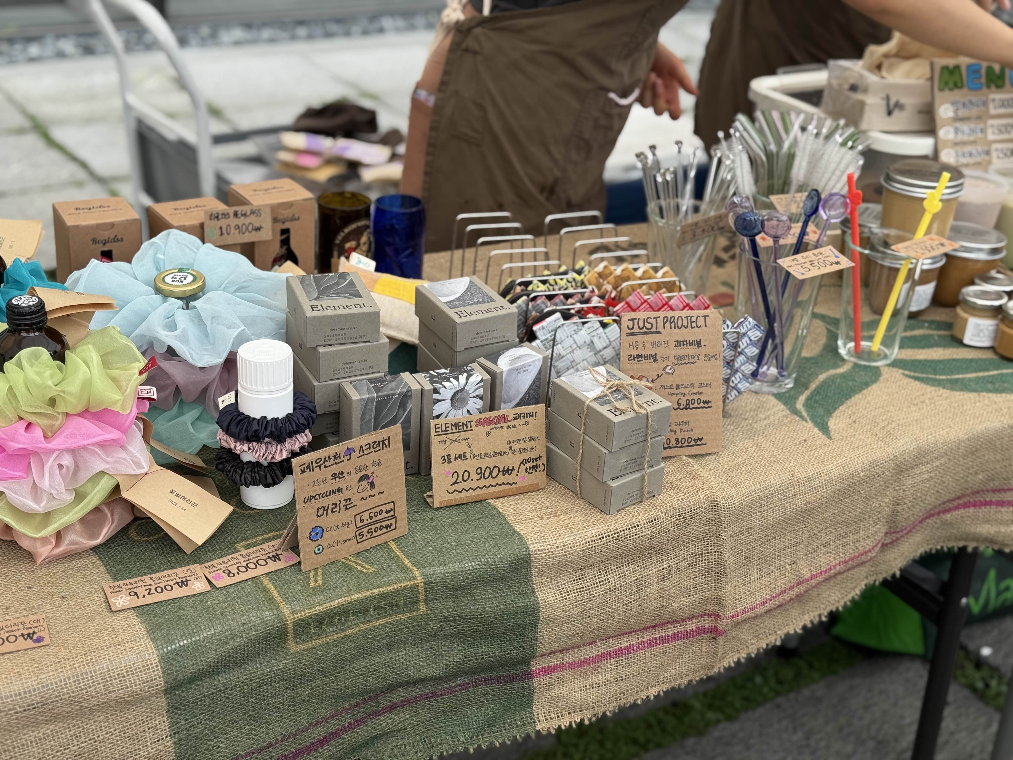 씨앗 키트도 사람이 많아서 사진만 찍고 재활용해서 만든 제품들도 구경했어요.